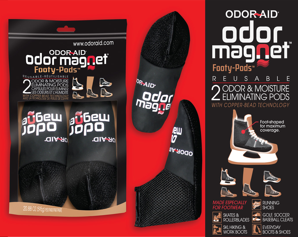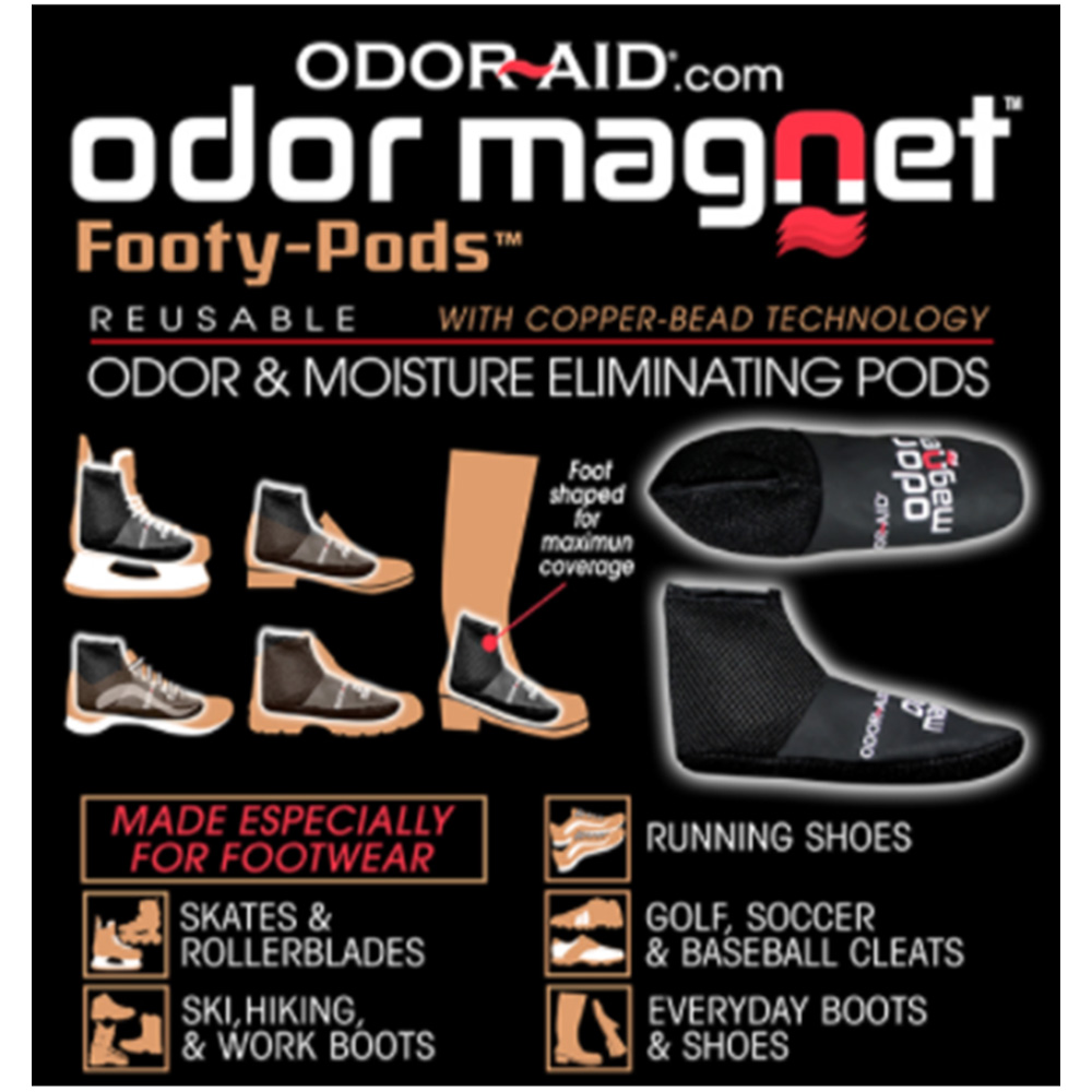 - Odor Aid Magnet Footy Pods effectively eliminate foul odors and moisture in various types of footwear.