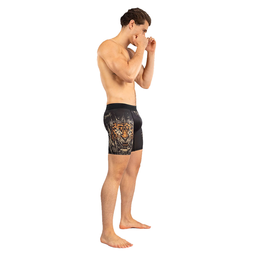 The Venum Tiger Men’s Vale Tudo Shorts are mid-thigh length compression shorts, designed to withstand the most intensive training. The fabric is lightweight and delivers a comfortable “second skin” effect. Compression fabric may promote muscle recovery during and after exercise.